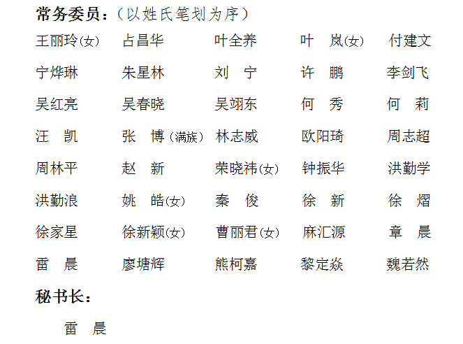 经景德镇市青年联合会第九届委员会全体会议选举产生主席、副主席、常务委员会委员,名单如下: