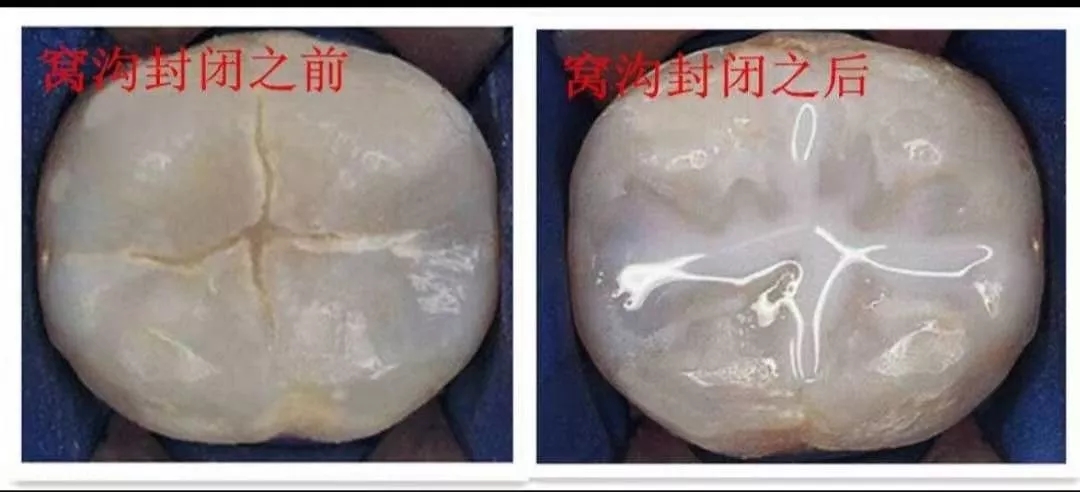窝沟封闭,是指不损伤牙组织,将窝沟封闭材料涂布于牙冠咬合面、颊舌面的窝沟点隙,当它流入并渗进窝沟后固化变硬,形成一层保护性屏障,覆盖在窝沟上,能够阻止至龋菌及酸性代谢产物对牙体的侵袭,以达到预防窝沟龋的方法。