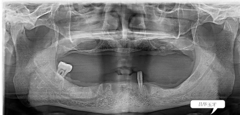 无论是直接的口腔检查还是从全景片上来看,这位患者全口牙列所剩无几,患者自述过程中亦可听出患者是饱受无牙之苦。也确实,从面容到进食再到发音均受牙齿缺失的影响。(如下图)
